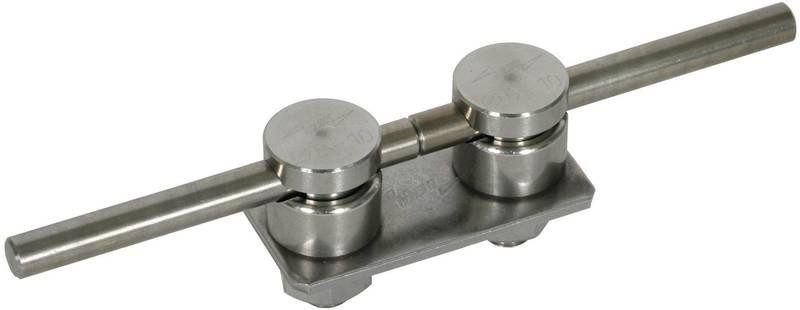 Anschlussplatte für den Anschluss der HVI-Leitung an die Fangspitze (D10 mm) mit zwei KS-Verbindern. Kann auch als KlemmSchrauben-Verbinder nach DIN EN 62561-1, zum blitzstromtragfähigem Anschluss von Rundleitern eingesetzt werden. Ausführung zweiteilig als Verbinder Abstand 40 mm, mit Schraube und Mutter M10.