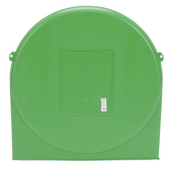 Der grüne 3M™EMS iD-Full Range Marker – Abwasser macht das Markieren und damit auch das spätere Orten unterirdischer Abwasserleitungen denkbar einfach. Er kann bis zu einer maximalen Tiefe von zwei Metern im Erdreich geortet und ausgelesen werden, ist unempfindlich gegen Mineralien, Chemikalien und Temperaturwechsel und somit für jegliches Erdreich geeignet. Aufgrund seines Durchmessers von 38,1 Zentimetern bei einer Höhe von 1,65 Zentimetern und seiner horizontalen Einbaulage dient er unter anderem auch als "Schutzschild" für Muffenkörper. Die elektronischen Marker gelten als zuverlässigste Methode, bestehende oder neu zu installierende Einrichtungen zu markieren – auch unter Schnee. Ihre Funktion wird weder von metallischen Kanälen oder Rohren noch von Zäunen oder Hochspannungsleitungen beeinflusst. Die EMS iD-Marker werden mit einer individuellen, bereits vorprogrammierten Seriennummer ausgeliefert. Diese Seriennummer ist zusätzlich in Form eines ablösbaren, selbstklebenden und mit einem Strichcode versehenen Aufklebers am Marker befestigt und kann direkt in den Kabel-/Lageplan geklebt werden. Empfängt der iD-Marker das „Lese“-Signal eines 3M™ Dynatel™ Kabelortungsgeräts, übermittelt er die in ihm zuvor gespeicherten Informationen. Die iD-Marker können temporär oder permanent programmiert werden, um benutzerdefinierte Informationen wie Kabel- oder Muffendaten, Typ der Anwendung oder andere wichtige Details zu speichern. Nachdem diese Daten mittels des Ortungsgerätes ausgelesen wurden, können sie über eine serielle RS232 Verbindung an einen PC übertragen werden. Diese aktiven iD-Full Range Marker sind auch kompatibel mit älteren, passiven Markern.