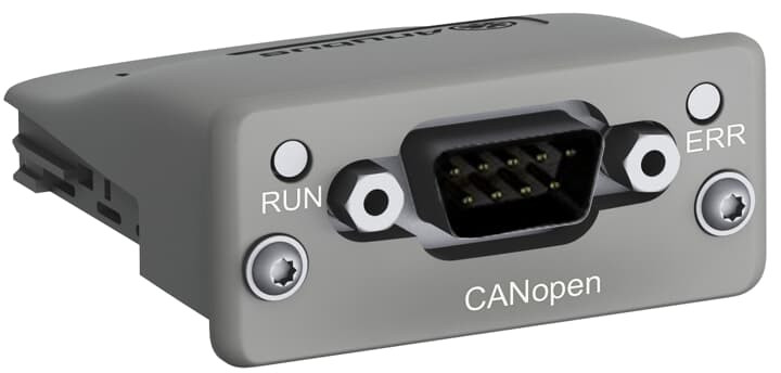 Anybus-Anschlusszubehör für das Kommunikationsprotokoll CANopen-IO. Dies ist ein komplettes Kommunikationsmodul, das in einen PSTX30…1250 -Softstarter integriert wird, damit dieser über ein CANopen-IO-Netzwerk kommuniziert.