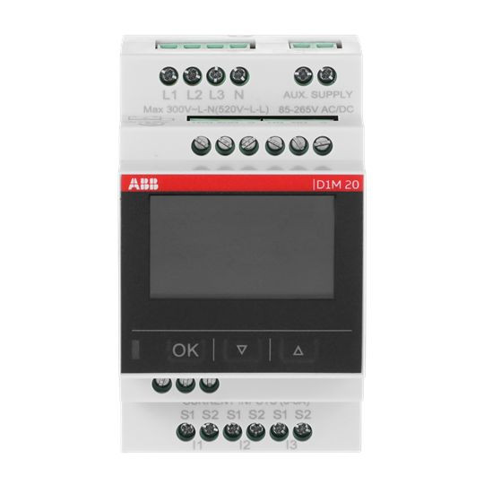 D1M 20 Modbus ist ein Leistungsmessgerät mit Hilfsversorgung 85-265 V AC/DC, Modbus RTU RS485, 2 digitale Eingänge und 2 digitale Ausgänge, Klasse 0.5 Genauigkeit für Wirkenergie gemäß IEC 61557-12 PMD, LCD-Display.