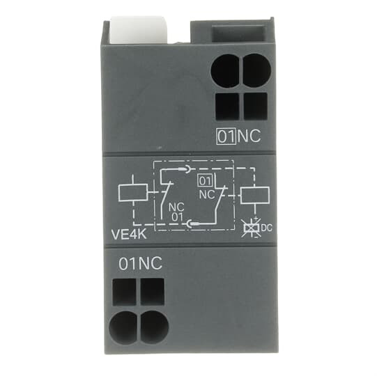 Das Befestigen des elektrischen Verriegelungssatzes an der Vorderseite des Schützes verbindet die beiden eingebauten Öffner-Verriegelungskontakte mit den beiden Spulen. Der VE4 Block muss mit einer A2-A2-Verbindung verwendet werden, um den elektrischen Schaltplan zu berücksichtigen.