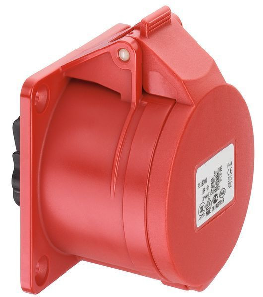 CEE Flanschsteckdose gerade, nach IEC 60309, EN 60309, VDE 0623, spritzwassergeschützt IP44, Nennstrom 16A, 3-polig, Nennspannung 230V AC, 6h blau, Schraubklemmen, alle Flanschsteckdosen sind mit unvernickelten Kontakten