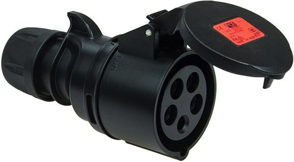 | Kurzbeschreibung | CEE Kupplung schwarz, IP44, 32A, 4-polig, 400V, 6h, rot |