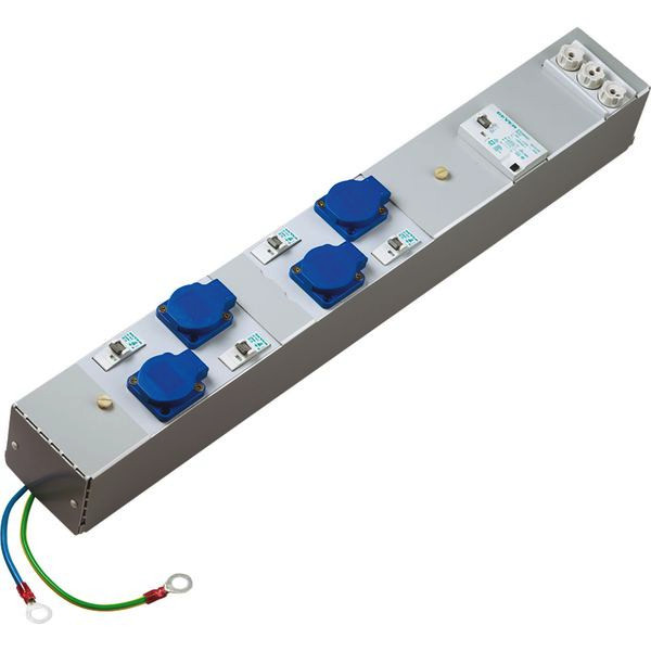 Steckdosenleiste 5LbestehendAus: 4xSchuko 16A,1xD02,3polig + 1xFI 40A/0,03A,4polig + 4xLS B 16A,1polig