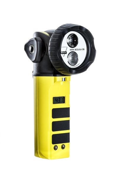 AccuLux HL 35 EX HIGH POWER Leuchte (Art.Nr. 458681, gelb/schwarz) Aufladbare Knickkopf-Leuchte mit 2 Power LEDs und sehr hoher Leuchtkraft; 3-stufig schaltbar: 2 Schaltstufen für den Fernbereich (bis ca. 450 Lumen!) und 1 Schaltstufe für den Nahbereich; Notlichtfunktion zuschaltbar, austauschbarer Lithium-Ionen-Akku mit digitaler Restkapazitätsanzeige in Stunden und Minuten, beidseitig (180°!) verstellbarer Leuchtenkopf; EX-Zonen: 0, 1, 2, und 20, 21, 22; Schutzart: IP 67 (Leuchte): tauchfähig bis 1 m Tiefe (zeitweise); Gewicht: ca. 600 g, 3 Jahre Akku-Garantie!