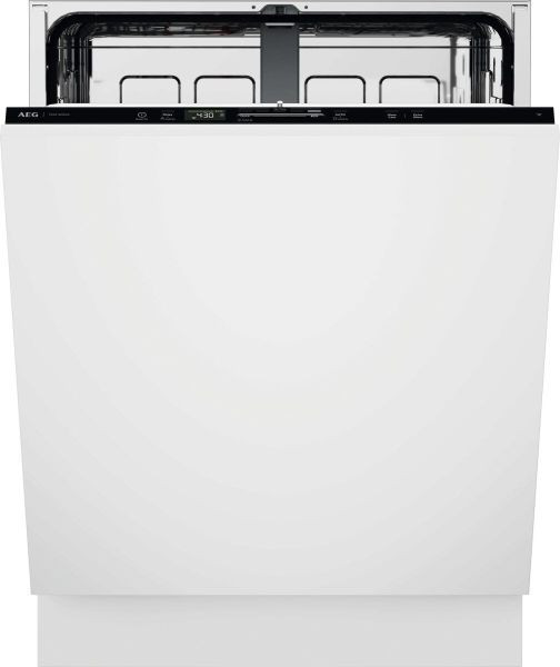 innenliegende Bedienblende, Display 1-24 Std. Startzeitvorwahl und Restlaufanzeige, AutoOff, elektronische Nachfüllanzeige für Salz und Klarspüler, akustisches Signal am Programmende, LightOnFloor (Infolicht am Boden), Wassersensor, WLAN-fähig, steuerbar über die AEG App, Spülprogramme: 120 Min., 60 Min., 90 Min., AutoSense 50°-60°, Eco 50°C, Maschinenpflege, Quick 30 Min., Vorspülen; Optionen: Glasschutz, XtraPower; AirDry, EasyFlex Körbe, Oberkorb: 2 klappbare Tassenablagen, 2 SoftSpikes (Fixierung für Gläser), 2 umklappbare Zinken für Gläser, Unterkorb: 4 flexible klappbare Zinken; AQUA CONTROL