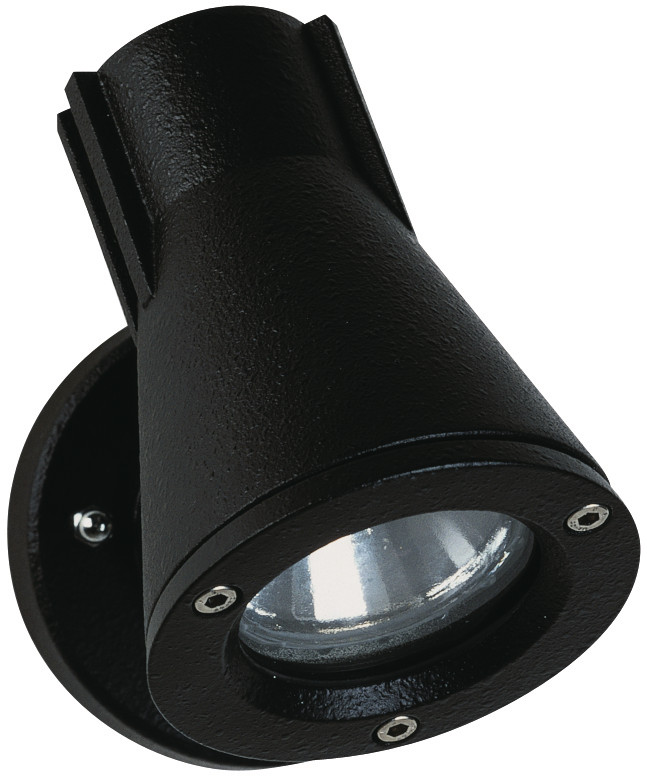 dreh- und schwenkbar, mit Montageplatte, aus korrosionsbeständigem Aluminiumguß und Borosilikatglas klar. Eingerichtet für 1 x PAR 20 50 Watt, Fassung E27.Farbe: schwarz Schutzart IP 55 - Schutzklasse d 100 x 170 x 135 mm