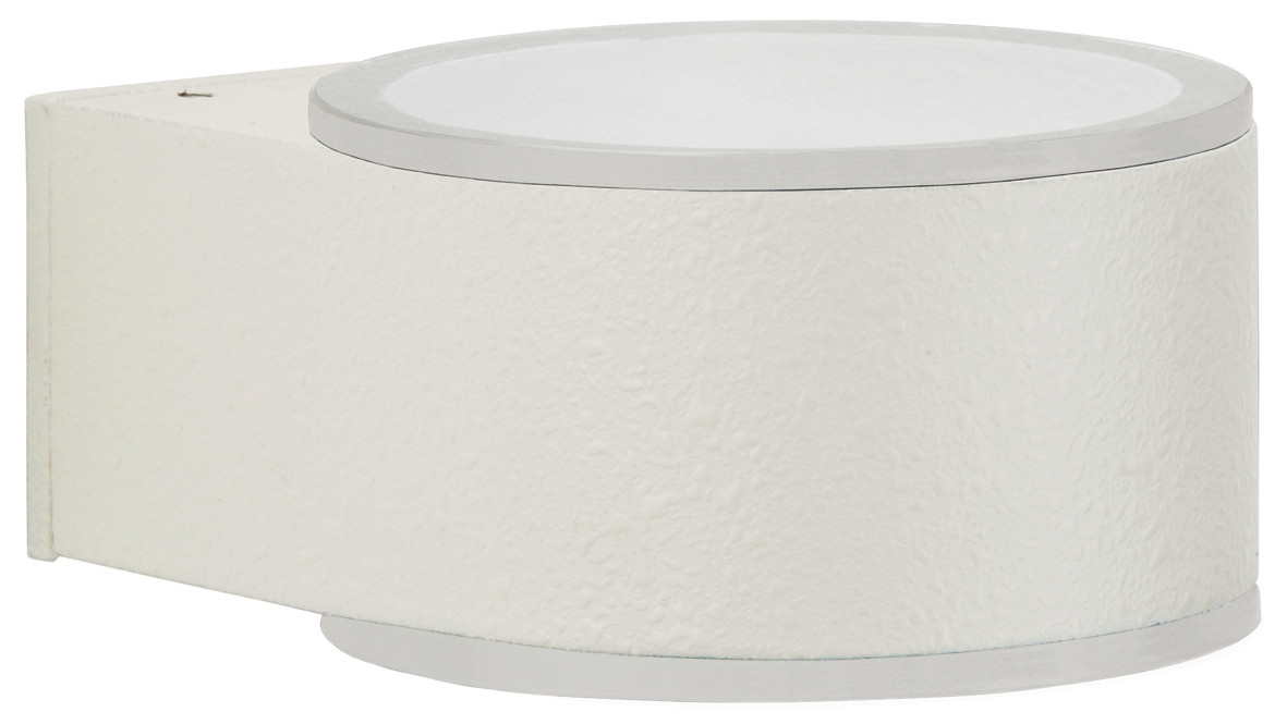 aus Aluminiumguss mit satiniertem Sicherheitsglasbestückt mit 1 x LED 3 Watt - 330 lm - 3000 integriertem Konverter und Montageplatte Farbe: weiß Abmessung: 100 mm x 60 mm x 115 mit Leuchtmittel der Energieeffizienzklasse: E
