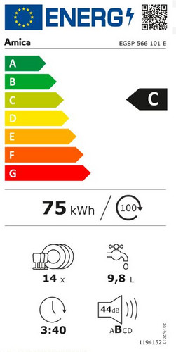 | Energieeffizienzklasse Geschirrspüler (2019/2017/EU) | C |