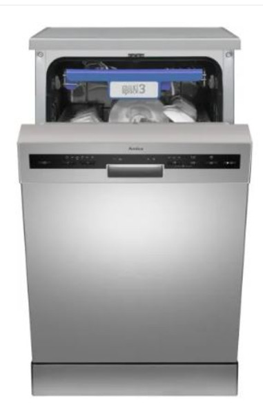 Stand-Geschirrspüler, Silber, 10 Maßgedecke, Aquastopp Sicherheitsschlauch, elektronisch-Startzeitvorwahl, 3/6/9 h, 6 Programme, 5 Spültemperaturen, OpenDry - Türöffnung nach Programmende, Halbbeladung, Klarspüler-, Salzmangelanzeige, Besteckkorb, Aqua Spray mit 3 Sprüharmen, verstellbare Tassenablage, Unterkorb mit faltbaren Gittern, Innenbehälter: Edelstahl