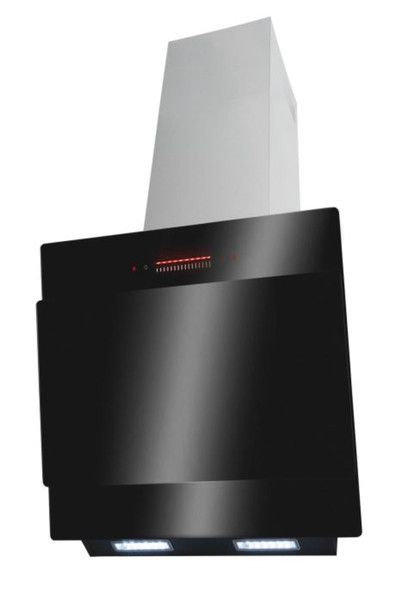 Glass Line, Schwarzer Glasschirm, Farbe Kaminschacht: Edelstahl, 1 Display rot, SensorSlider, Lichtwärme 6500 K - Abluft-/Umluftbetrieb, 10 Leistungsstufen 298-595 m³/h, max. 15 Min. Nachlaufautomatik - Beleuchtung: 2 x LED / 2,0 W, 1 Aluminium Fettfilter, spülmaschinengeeignet