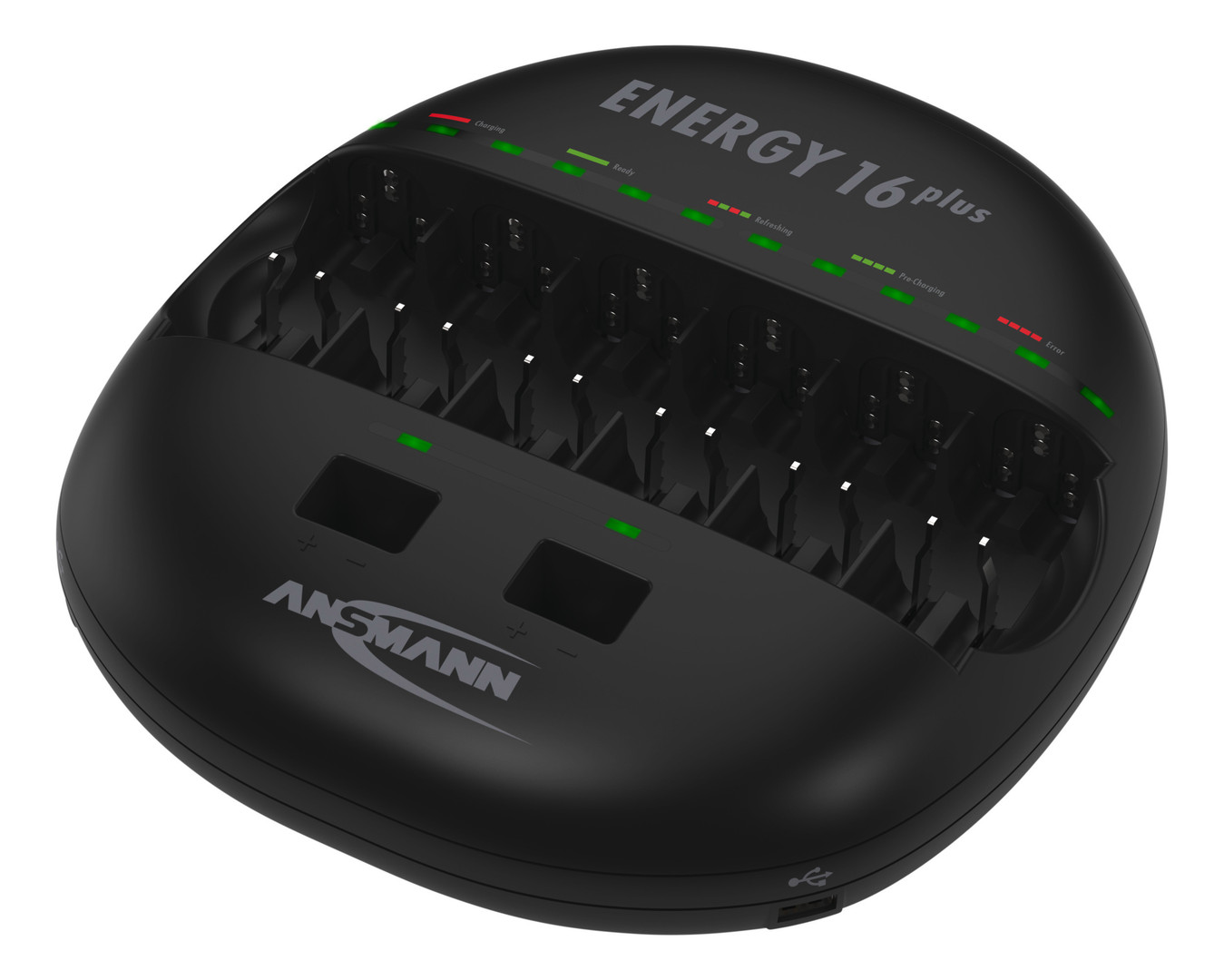 Das Energy 16 plus ermittelt automatisch den optimalen Ladestrom für die eingelegten Akkus und lädt diese mit bis zu 1000mA im Schnellladeverfahren.