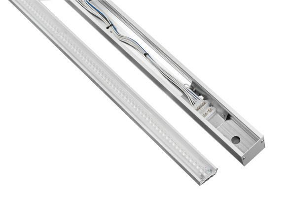 Hochwertiges LED Lichtbandsystem für Aufbau-Pendelmontage in Werkhallen und für Retail. Einreihige Optik mit verschiedenen Abstrahlwinkeln und CCT. Installationszubehör separat zu bestellen. 3-Phasen Stromschieneneinsatz integrierbar. Leichte, werkzeuglose Montage. Enge Farbtoleranz MacAdam 3. Lichtstromrückgang nach 150.000h L80/B20 bei ta 25°C. Gültig für 28W, 34W, 44W . Integriertes, nicht dimmbares Betriebsgerät. 5 Jahre Garantie.