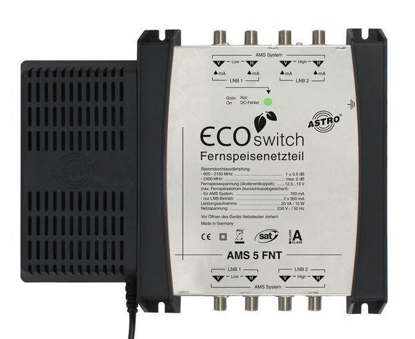 Fernspeisenetzteil für das AMS 5er Kaskadenmultischalter-System, max. Fernspeisestrom für AMS-System 1 x 700 mA, für LNB-Betrieb 2 x 350 mA