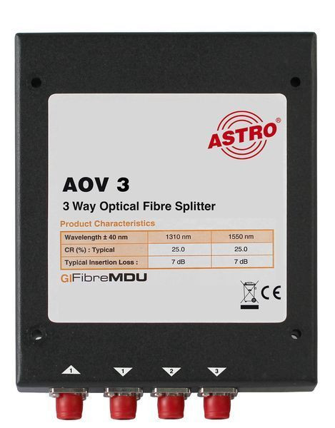 Optischer 3-fach Verteiler, ca. 5,5 dB Verteildämpfung, FC/PC Konnektoren, zur Verwendung in optischen SAT-ZF Verteilsystemen (in Verbindung mit AOF…/ AOFE… Verteilmaterial)