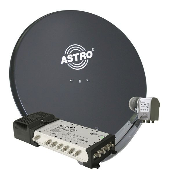 Set: 1 x Offset-Parabolantenne ASP 85 anthrazit, 85 cm Durchmesser, 1 x ACX 945 A Quatro-Universal Speisesystem zum Anschluss eines Multischalters, 1 x SAM 512 Multischalter