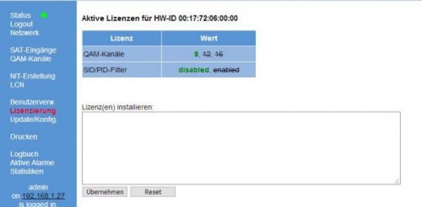 Lizenz zur Freischaltung des Multiplexers für die CI BOX 16 und CI BOX 32