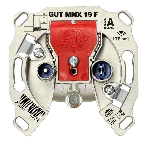 | Kurzbeschreibung | BK-Modem-Durchgangsdose, 5 - 1218 MHz, 19 dB Anschlussdämpfung |