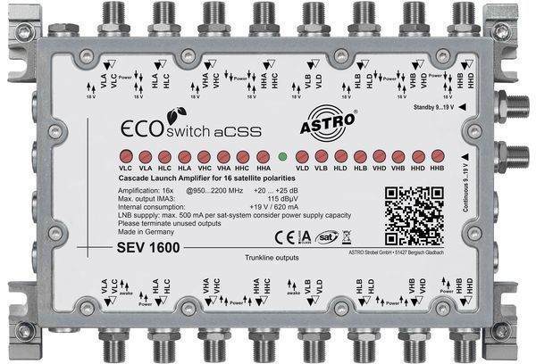 | Kurzbeschreibung | SAT-Kaskadenstartverstärker, 16 x 25 dB, inkl. SEV NT |