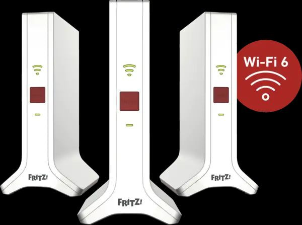 - WLAN-Mesh-System bestehend aus drei FRITZ!Repeater 3000 AX