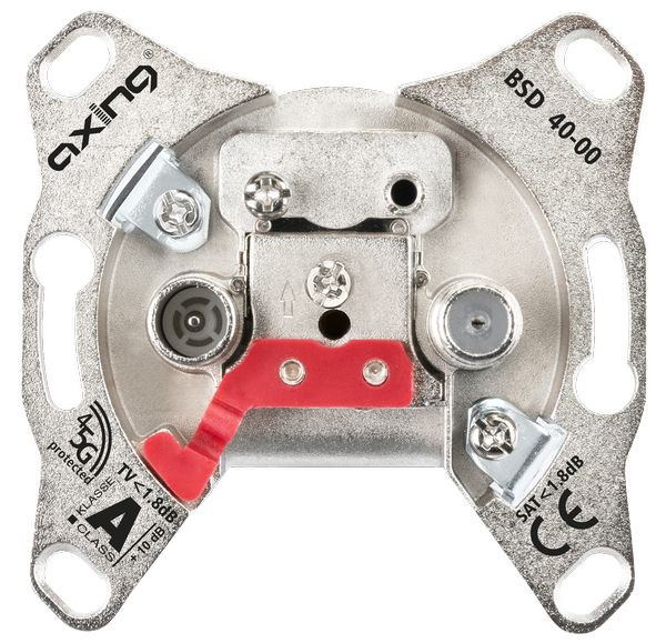 CATV/SAT-Stichleitungsdose 5 - 2200 MHz, Sehr geringe Abzweigdämpfung, Klasse A (+10 dB) gemäß EN 50083-2, Breitbandig rückkanaltauglich (EoC geeignet bis 204 MHz), Oberflächenveredelt, SAT = F-Buchse, TV/Radio = IEC-Stecker