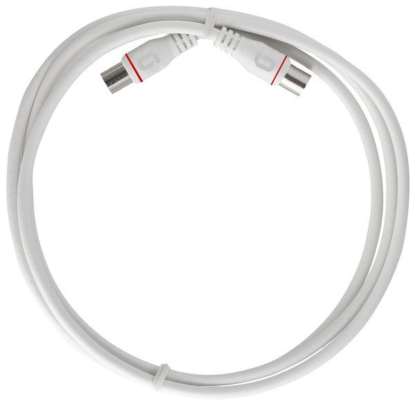 Endgeräteanschlusskabel F, axiale Stecker, Quickfix, 4-fach geschirmt, 2,00 m, Zum Anschluss von Endgeräten an Multimediaanschlussdosen, Gemäß VF TS 5001, Schirmungsmaß gemäß EN 60966-2-7, Klasse A (+ 20 dB), 4-fach geschirmt, 4G/5G protected, DOCSIS 4.0 ready, Weiß, im Polybeutel mit SB-Verschlusskarte, Farbcodiert, Vodafone gelistet