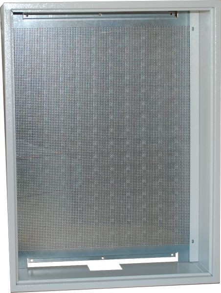 Montageschrank, 600 x 800 x 200 mm, Stahlblechschrank mit versenkter, abnehmbarer Tür, Oberfläche pulverbeschichtet, Farbe: RAL 7035, Vierfachverriegelung inkl. Schließzylinder und 2 x Schlüssel, Inkl. Lochblech-Montageplatte und Erdungsleitung