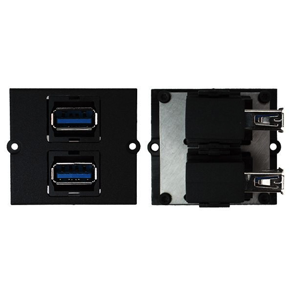 Rahmen 2xUSB 3.0 A/A 90° Abgang seitlich, inkl. 2 Schrauben; verpackt im Polybeutel.