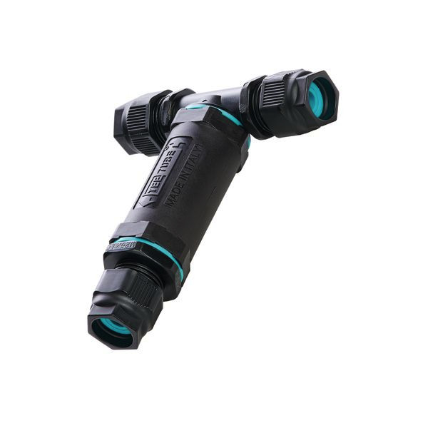 BAI Wasserdichter Verbinder TH402 Tee T-Form 1 Eingang - 2 Ausgänge 3-polig x 4mm² (max) 32A - 250V 92x121mm IP68 2 bar Schwarz