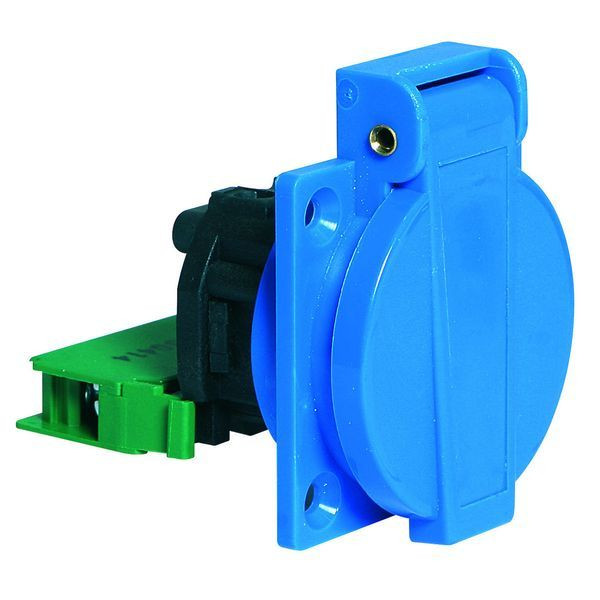 Sonstige technische Eigenschaften: Der Anschluss ist rückwärtig, Die Steckdose ist mit einem Hilfs-Kontakt-Schalter (Öffnerkontakt) ausgerüstet, Der Klappdeckel ist selbstschließend