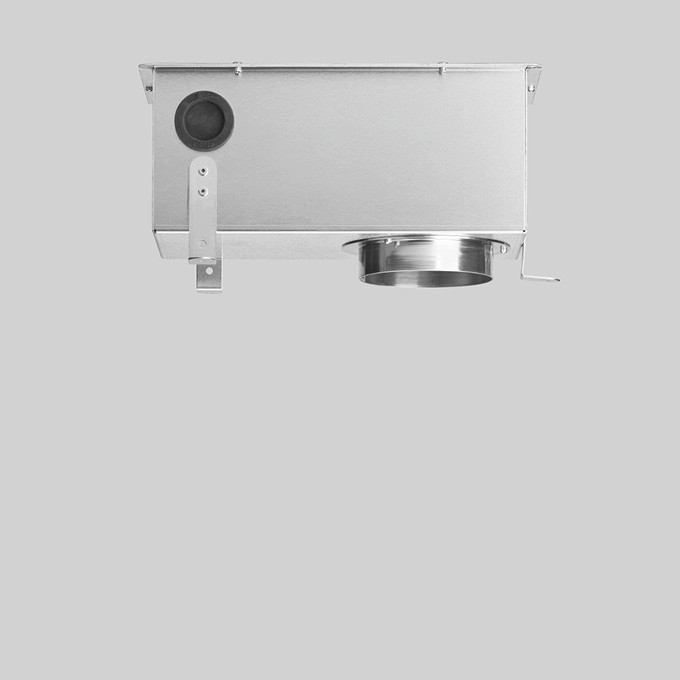 BEGA Einbaugehäuse 13609 für die Montage von Deckeneinbauleuchten in Betondecken. Einbaugehäuse aus Aluminium. Einbauöffnung Ø 98,5 mm. 2 gegenüberliegende Leitungseinführungen für Installationsrohre max. ø 30 mm. Abmessungen: 295 x 165 x 150 mm.