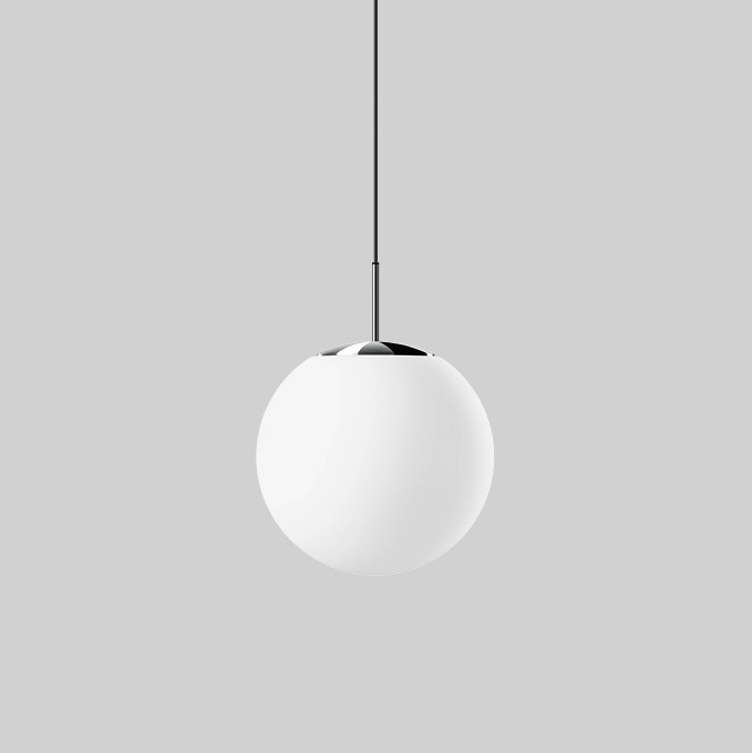 BEGA Pendelleuchte 45486.3K3 für den Innenbereich. Freistrahlendes Licht. Für 1 Lampe mit einer Leistung von max. 75 W, Sockel E 27. inklusive BEGA LED-Leuchtmittel 13592, 12 W, 1520 lm, Farbtemperatur 3000 K. Leuchtengehäuse und Baldachin aus Metall. Oberfläche Chrom. Mundgeblasenes seidenmattes Opalglas. Leitungspendel 3 x 0,75 qmm mit einem Stahlseil, Farbe schwarz. Kugeldurchmesser 250 mm, Gesamtlänge 2000 mm.