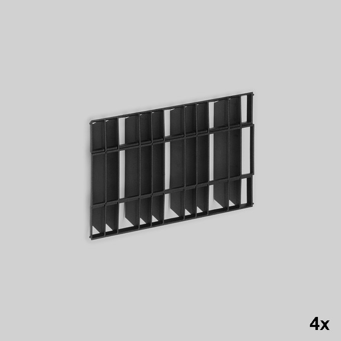 BEGA Raster 71107 für BEGA Scheinwerfer. Das Raster verhindert den seitlichen Einblick bis 45° aus allen Richtungen. Innenliegendes Raster aus glasfaserverstärktem Kunststoff. Farbe Schwarz.