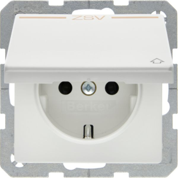 Steckdose SCHUKO mit Klappdeckel u. Aufdruck ZSV orange, Q.x polarweiß samt
