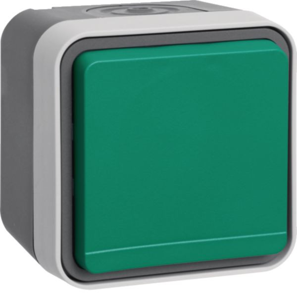 Steckdose mit Schutzkontaktstift und grünem Klappdeckel AP W.1 grau