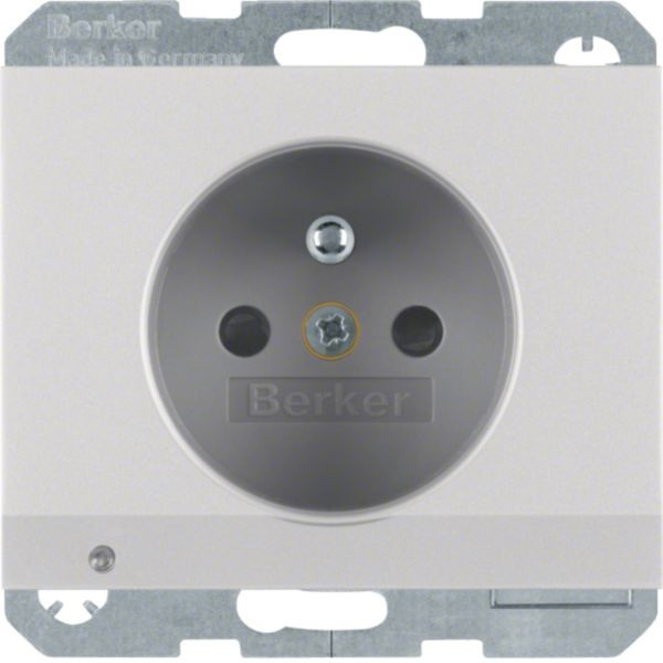 Steckdose mit Schutzkontaktstift, LED-Orientierungslicht u. erh.BS K.5 Alu