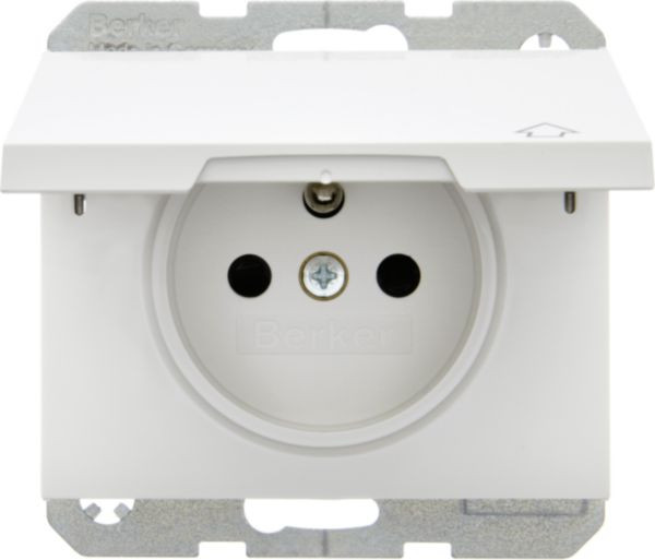 Steckdose mit Schutzkontaktstift und Klappdeckel, SLK, K.1 polarweiß glänzend