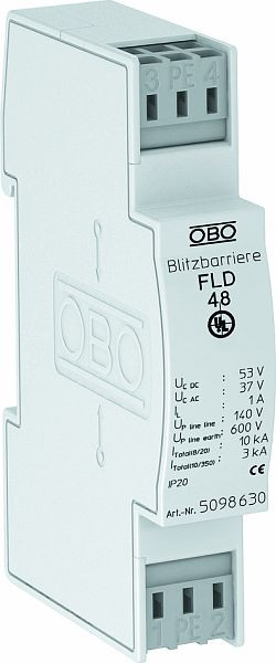| Kurzbeschreibung | Blitzbarriere mit Entkopplungsinduktivität 48V AC |