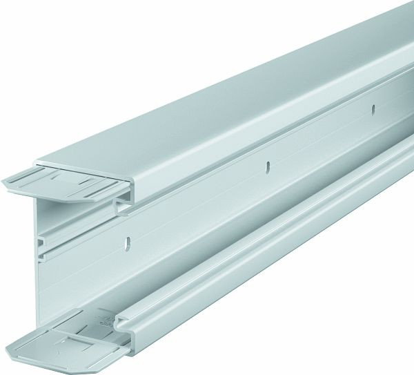GK Geräteeinbaukanal aus bleifreiem Polyvinylchlorid, geeignet zur Montage direkt auf der Wand oder an Wandkonsolen. Die Befestigung erfolgt über die Regellochung im Kanal. Der GK Geräteeinbaukanal verfügt über ein C-Profil am Boden zur Aufnahme einer Trennwand aus Kunststoff. In den Geräteeinbaudosen der Serie 71GD... können alle Schalterprogramme in Tragring- und Tragbügelbauweise sowie Modul 45-Installationsgeräte installiert werden. Die Systemöffnung beträgt 76,5 mm. Je Kanallänge ist einseitig ein Kupplungspaar vormontiert. Das Oberteil muss separat bestellt werden.