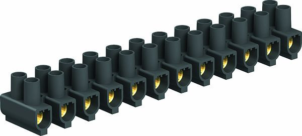 Klemmen Messing, Schrauben Stahl, galvanisch verzinkt und transparent passiviert, 12-polige, in Einzelklemmen abtrennbare Leisten.
