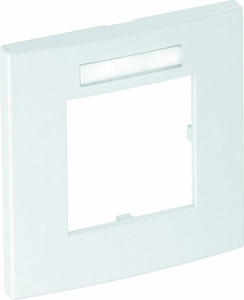 Frontrastender Abdeckrahmen für Modul 45 Einbaugeräte, 1fach, mit Beschriftungsfeld für senkrechte Geräteinstallation, zum Rasten in Geräteeinbaudose 71GD8-2.