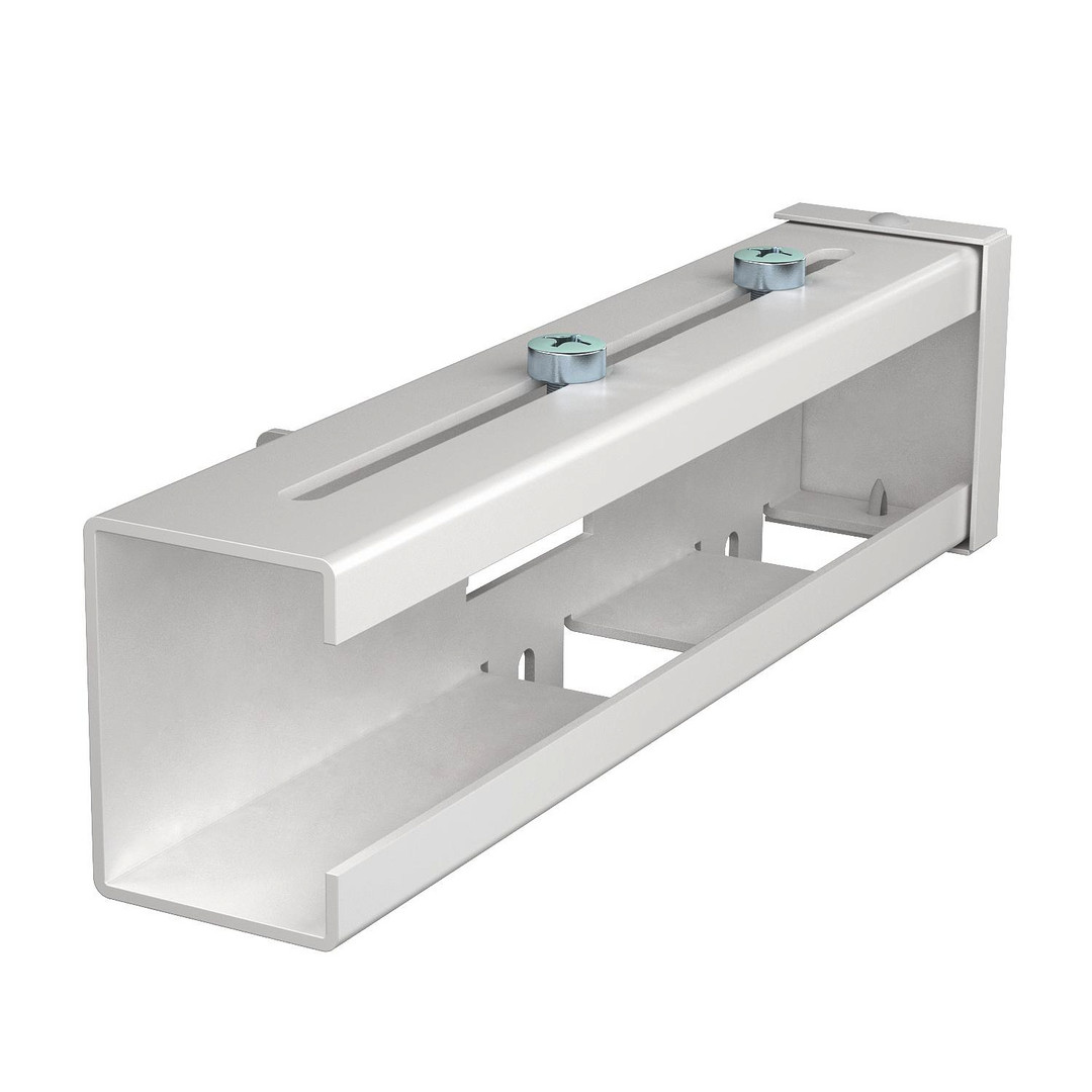 Kanalbefestigung zur Montage von Rapid 80 Geräteeinbaukanälen (GK, GS, GA) der Systemhöhe 130 mm an Bodenkonsolen.