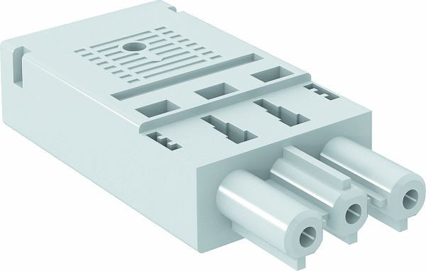 Buchsenteil 3-polig, Typ GST18i mit Federkraftanschluss für starre Leitung von 1,5 - 2,5 mm², eindrähtig bzw. ultraschallverschweißt, feindrähtige Leitungen 1,5 mm² mit Aderendhülsen, unmontiert mit Zugentlastung, vor Ort konfektionierbar, 250 V, 16 A.