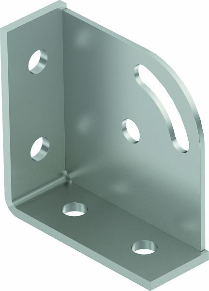 Verstärkter Montagewinkel mit 6 Löchern zur Verbindung von Profilschienen 41 x 41 mm und 41 x 21 mm im Winkel von 90°. Zusätzliche Befestigungsmöglichkeit einer Strebe im Winkel von 45° mit einer Verstellmöglichkeit von +/- 30°. Für Winkel von 15° bis 75° einsetzbar.
