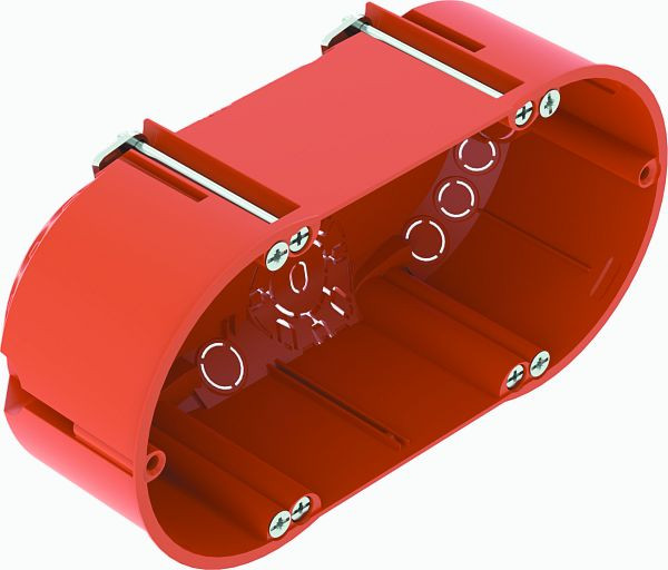 Doppelte Hohlwand-Gerätedose für den Einsatz in Hohlwänden mit einer Einbautiefe von mindestens 47 mm und einer Plattenstärke von 5 - 40 mm.
