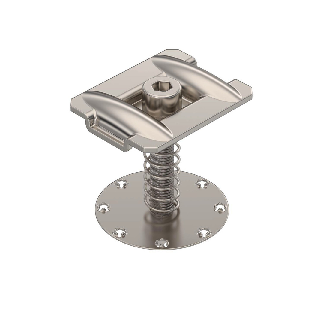 Zwischenklemme mit Feder zum Befestigen von Photovoltaik-Modulen auf Trägerprofilen. Geeignet für Schlitzweite 10 mm. Schraubbare Befestigung des PV-Moduls mit Innensechskant-Schlüssel Größe 6.