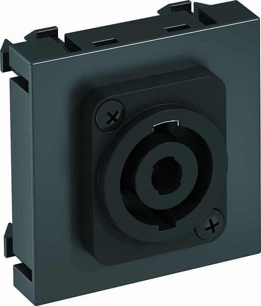 | Kurzbeschreibung | Multimediaträger Speakon Buchse mit Schraubanschluss 45x45mm Polycarbonat schwarzgrau RAL 7021 |
