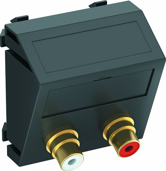 | Kurzbeschreibung | Multimediaträger Audio-Cinch 2x Buchse mit Lötanschluss 45x45mm Polycarbonat schwarzgrau RAL 7021 |