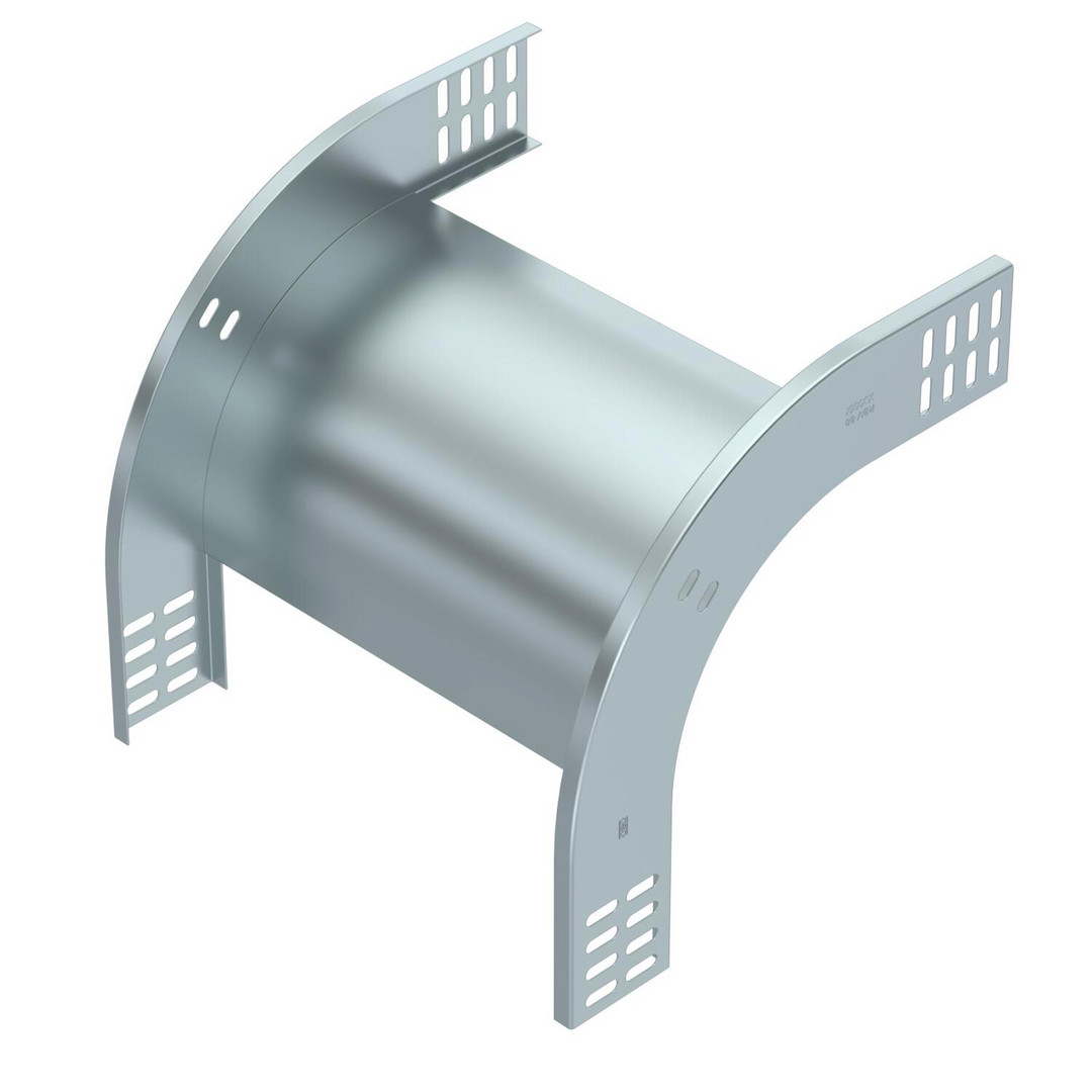Einteiliger, geschlossener Vertikalbogen 90° in fallender und runder Ausführung für alle Kabelrinnentypen mit der Seitenhöhe 60 mm.