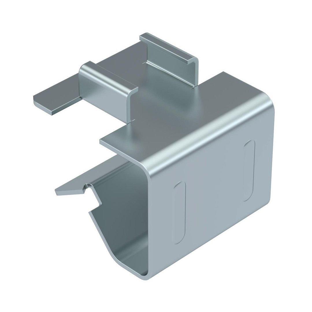 Adapter zur Aufnahme von Trägerklammern Typ SCC (Flanschdicke 1-4 mm). Befestigung an Stahträgern durch Aufschlagen.